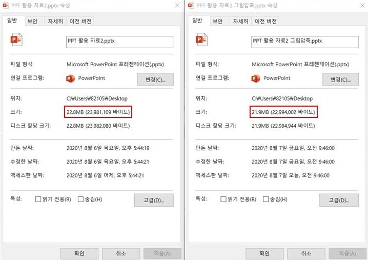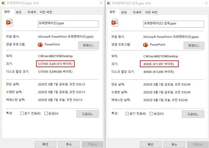 이번에는 사진 위주의 파일로 용량 비교를 해보았는데요! 확실히 많이 줄었네요.